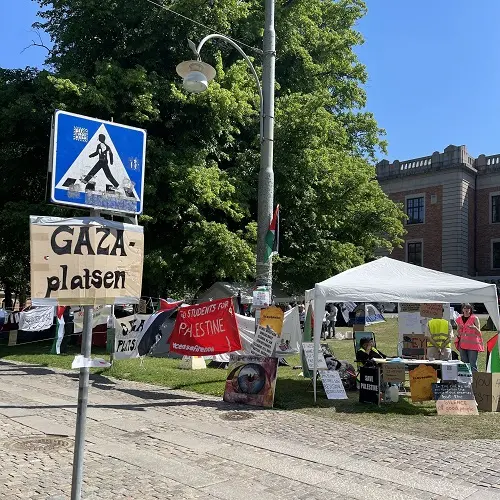 På Vasaplatsen här i Göteborg har studenter sedan den 14:e maj tältat utanför universitetsbyggnaden för att stödja Palestina. Hör en av demonstranterna berätta om målet med protesten. Reportrar: Saga Aschan Kjellström och Elin Jonsson