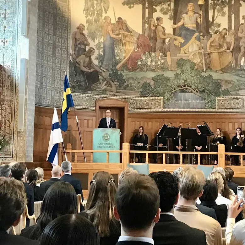 I veckan besökte Finlands nye president Alexander Stubb, i sällskap med det svenska kungaparet och utrikesministern Göteborgs universitet. Vår reporter Magdalena Johnson fångade ögonblicket och berättar om den historiska händelsen tillsammans med studenter, tillresta journalister och framstående forskare och docenter i publiken. Reporter: Magdalena Johnson